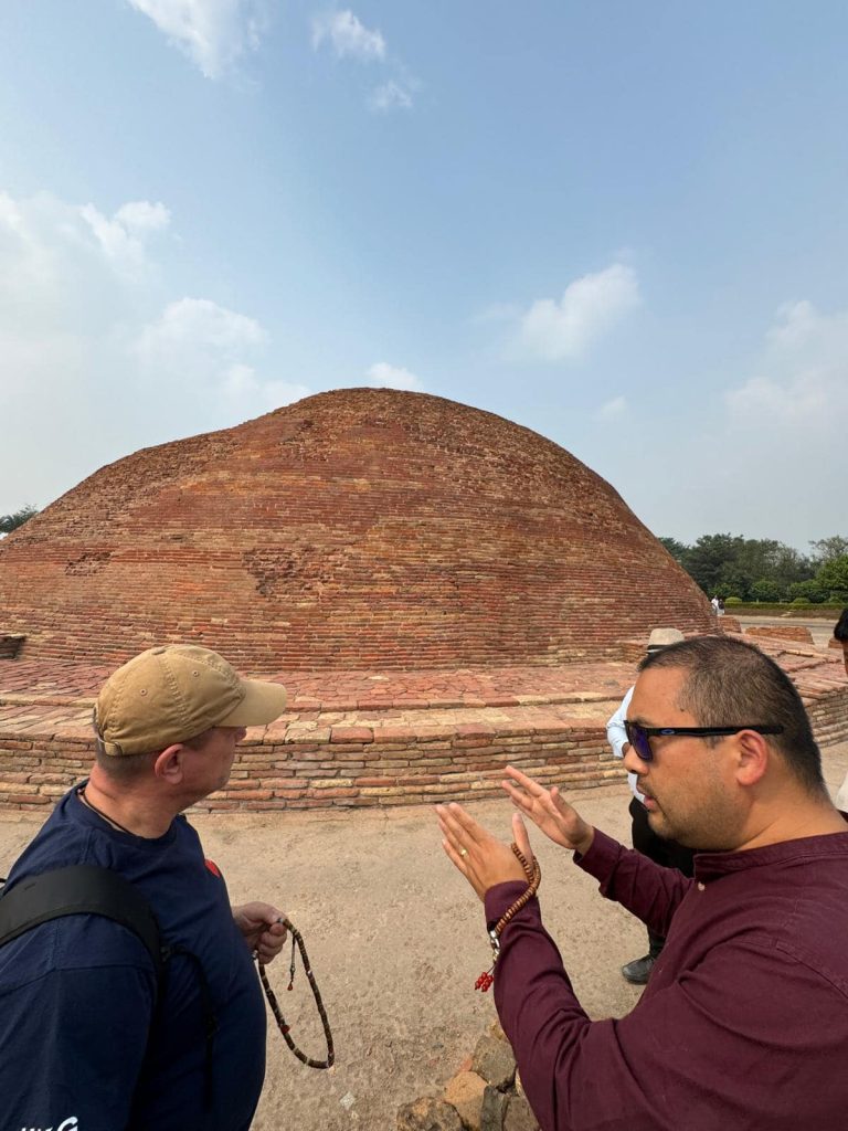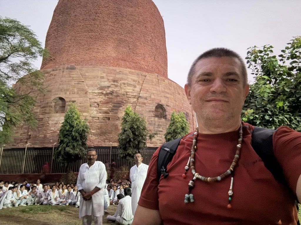 A következő helyszín Varanasi volt, pontosabban Sarnath, egy Varanasihoz kapcsolódó város, amelynek ősi maradványai vannak. A kaotikus forgalom miatt késő délután érkeztünk, és nem tudtunk belépni a Sarnath ősi sztúpa parkjába. Megkerültük, és Varanasi felé vettük az irányt, a szállodánk közvetlenül a Gangesz folyó partján volt. Este a minden képzeletet felülmúló örvényben és a Gangesz partján sétáltunk. A víz olyan, mint a fekete kávé, mindenhol szemét és mocsok… Sokat jártam Indiában, és azt kell mondanom, hogy megszoktam. Szeretem így ahogy van. Másnap nagyon korán reggel indultunk, és már 7 óra előtt értünk a Sarnath parkhoz. Sarnath volt az a hely, ahol Buddha a megvilágosodása után első tanítását adta, és itt beszélt először a Négy Nemes Igazságról. Sarnath a világ 4 legszentebb buddhista helyszínének egyike. Ismét felemelő élmény sétálni a parkban a régi sztúpa körül, leülni, kiüríteni magunkat és csak lenni… Nehéz szavakba önteni, ahogy más helyszíneken sem lehet.
